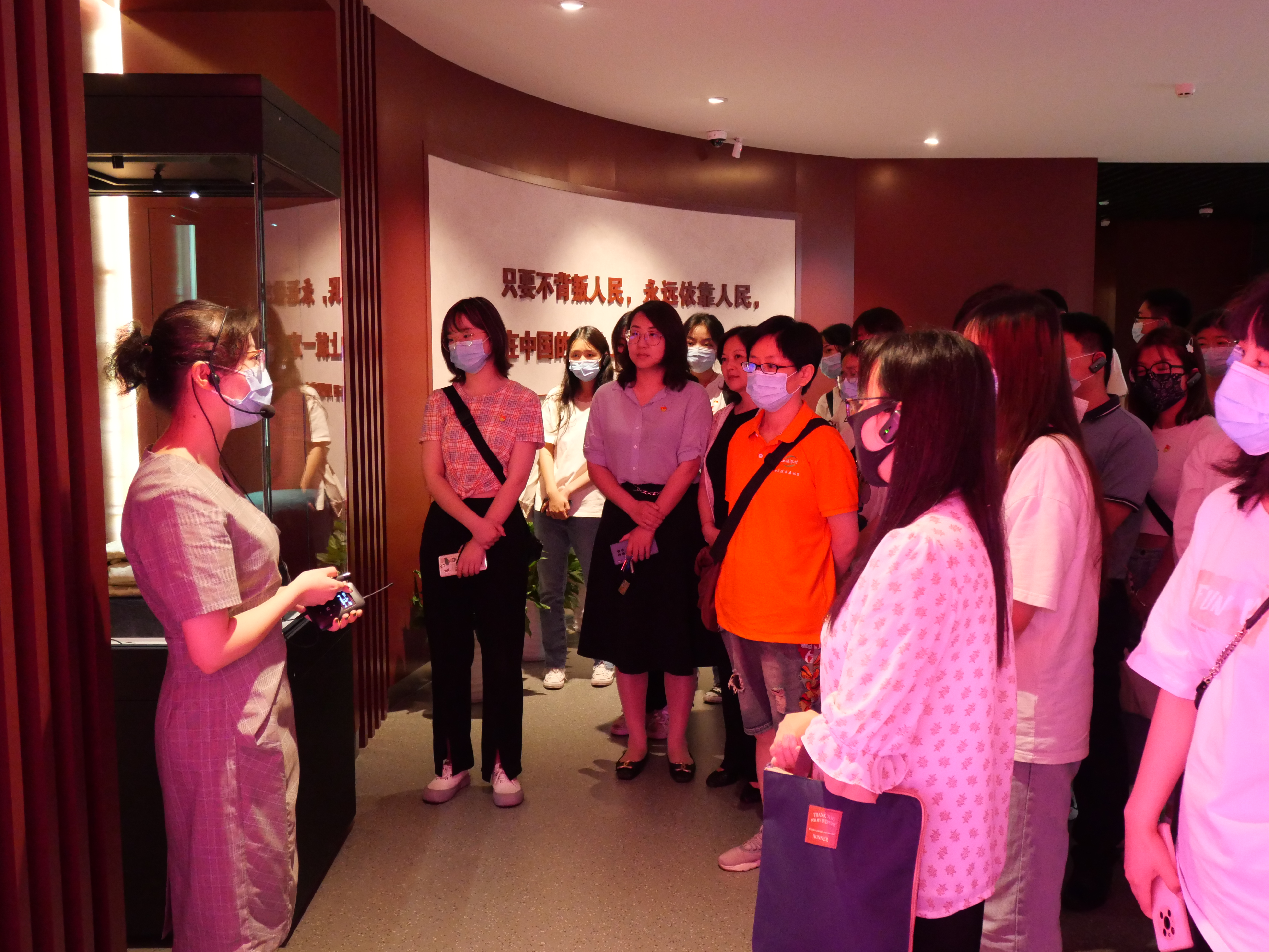 在主展厅,在肃穆的汉白玉浮雕前,党员们面向党旗,进行了庄严的宣誓仪式。
