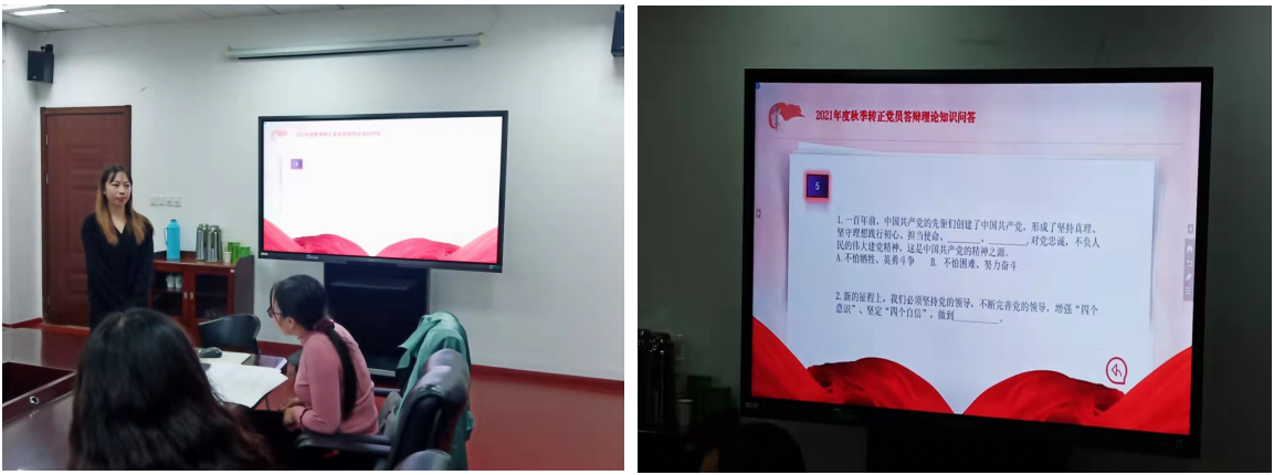 答辩会上,预备党员以PPT汇报的形式,介绍了自己对党的认识、预备期间的表现、缺点不足及今后努力的方向等,大家态度认真,准备充分。