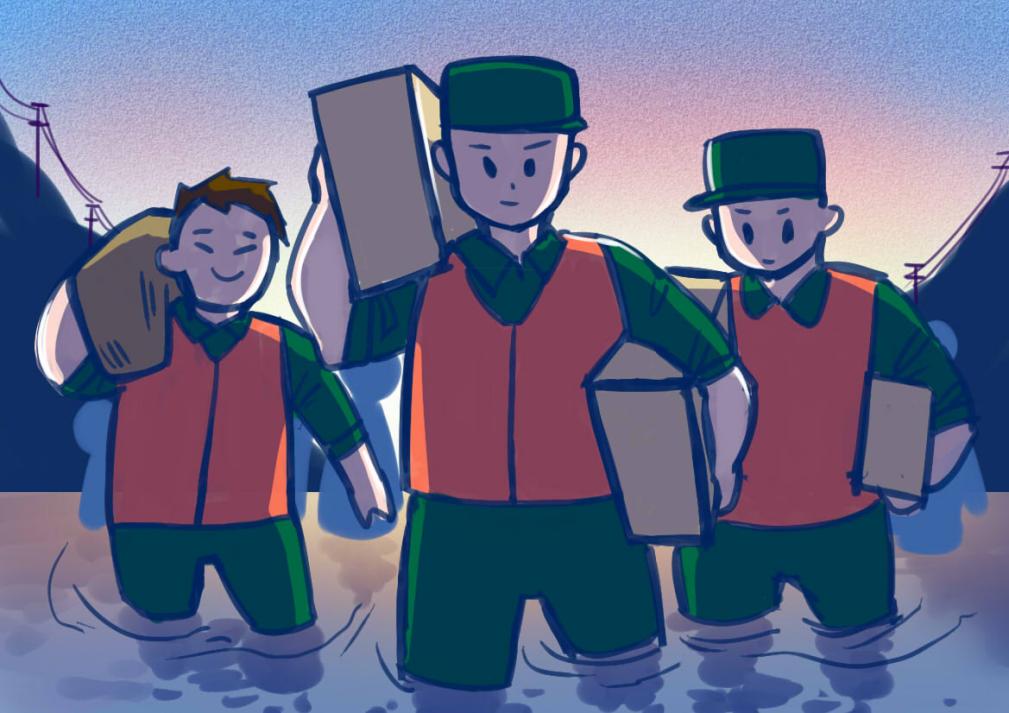 洪水黑暗,他们仿佛是“光明”的使者,坚定不移的身躯和永不退缩的双手托起了无数生的希望,与自然灾害相抗争,照亮了原本黑暗的远方。