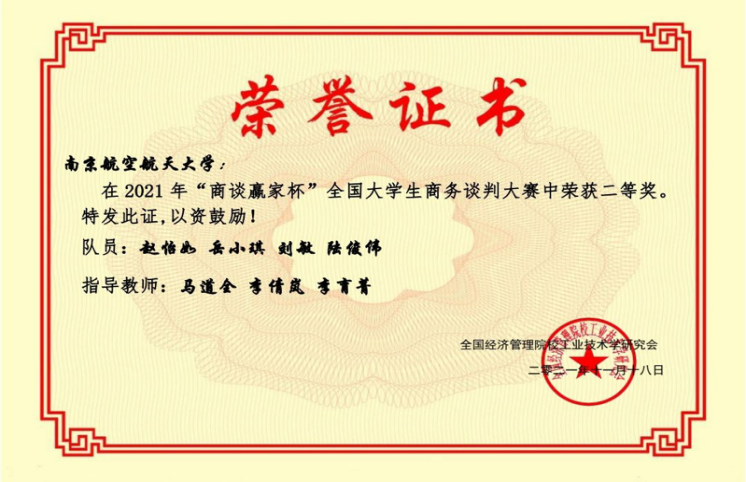 面对线上谈判带来的诸多不可控状况,我校参赛队伍不惧困难,敢于挑战,牢牢把握住比赛节奏,充分展现了南航学子的实力风貌,顺利完成谈判议程,并获得评委老师们的一致好评。