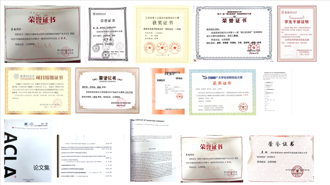 图为部分获奖及荣誉证书