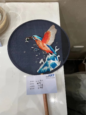 这是一只在海上捉鱼的小鸟。刺绣图案比较简单,多用渐变来感受小鸟的翅膀羽毛的质感。