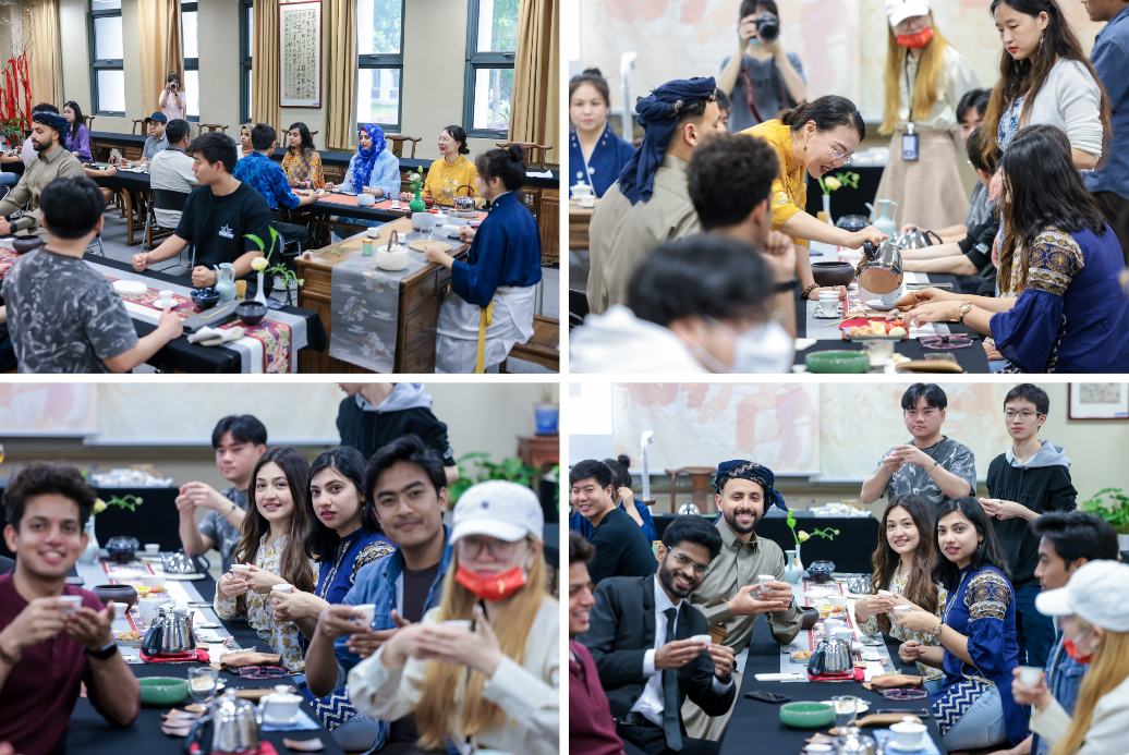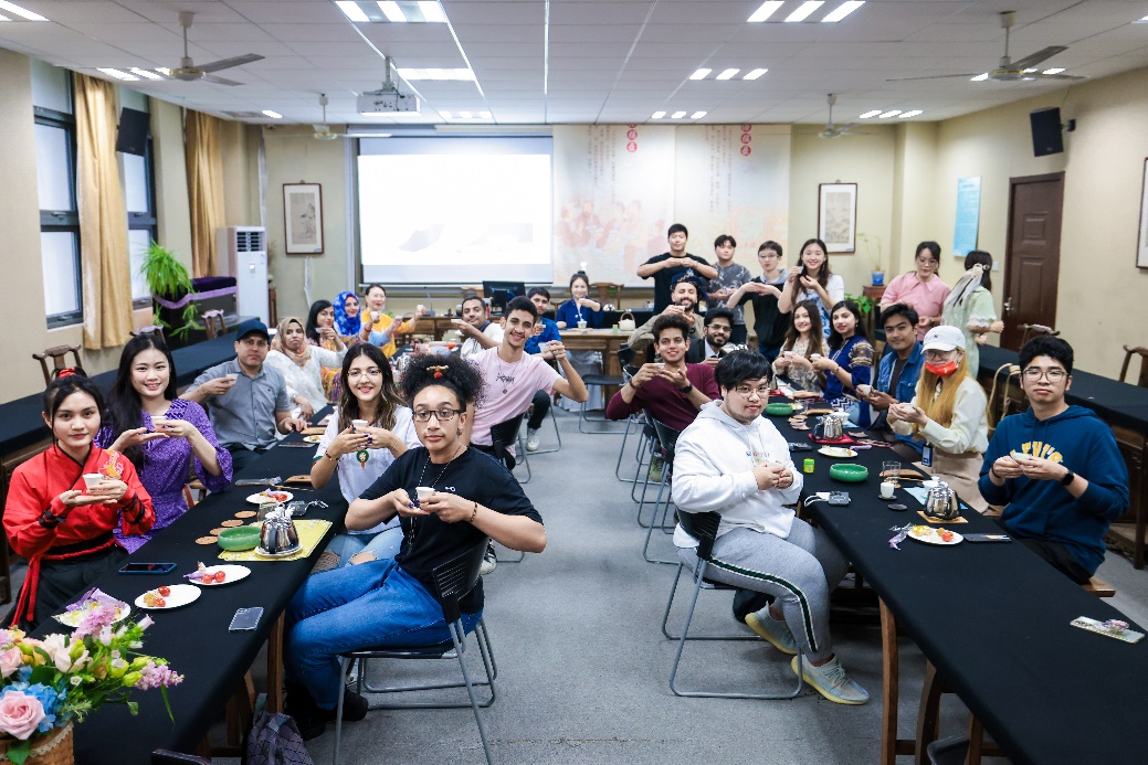 各个环节中留学生们积极参与,纷纷驻足观赏、认真学习礼仪、冲泡技法、品茗方法、与同伴分享自己亲手冲泡的红茶、以礼互应、拍照留念,乐此不疲!