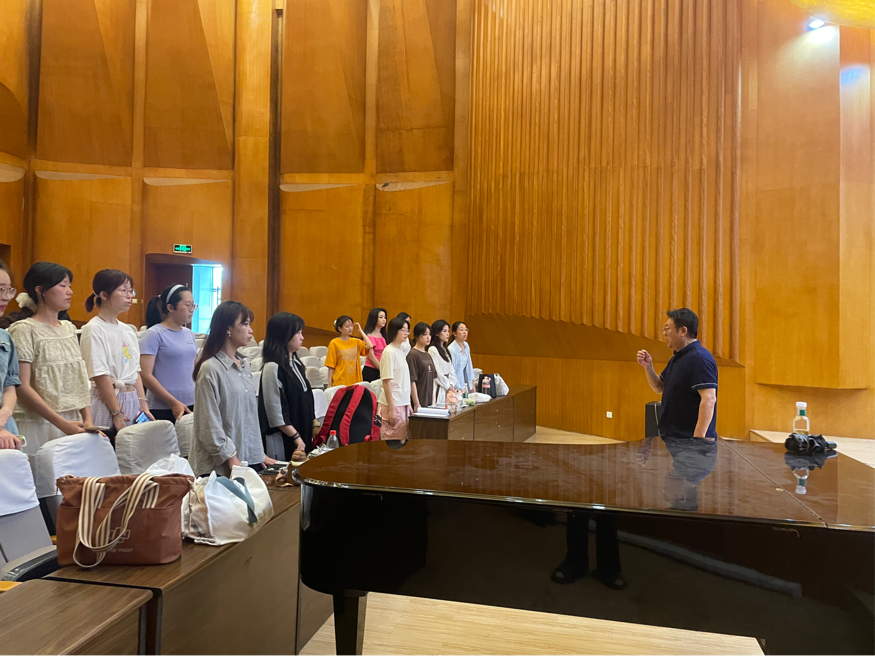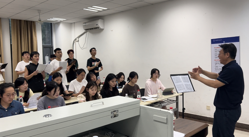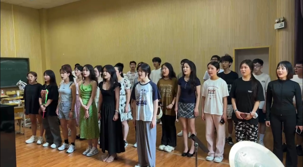 院长、合唱团指导教师板俊荣教授耐心教导大家如何正确发声、掌握节奏,如何合理运用呼吸等技巧。通过不断的练习,合唱团成员逐渐提高了自己的合唱水平,也更加深入地理解了音乐的魅力和表达方式。同学们表示:“板院长的身上不停地散发着一种能量,他洋溢的情绪很自然的就带动了每个声部的每个人,第一次以这种方式享受音乐”。