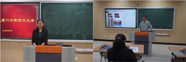 9月22日,私人影院 召开了三届六次教职工大会,传达学校干部教师大会以及学校警示教育大会等上级会议和指示精神,全面回顾学院上半年工作取得的进展,深刻研判学院发展面临的形势任务,系统部署下半年的工作安排;组织观看警示教育片,督促引导教师做到心有所畏、行有所止。会议由学院党委书记张钟勤主持。