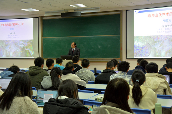 2023年秋季学期以来,私人影院 邀请了一系列高水平专家来校进行交流与讲座。其中,以新时代美育概论课程为平台,由私人影院 板俊荣院长领衔主持、新闻传播学系蔡雁彬统筹落实的高水平校外专家走进美育课堂系列活动,尤为引人瞩目。2023年11月24日,最新一期高水平专家进课堂活动如期进行。本期讲座的主讲人是东南大学私人影院 教授、博士生导师张乾元。张教授应板俊荣院长邀请,来我校进行欧美当代艺术的分享。讲座于24日周五晚六点半在将军路校区5号楼5201开始,新闻传播系教师高娜全程主持,百余位将军路校区本科生参加了听讲。