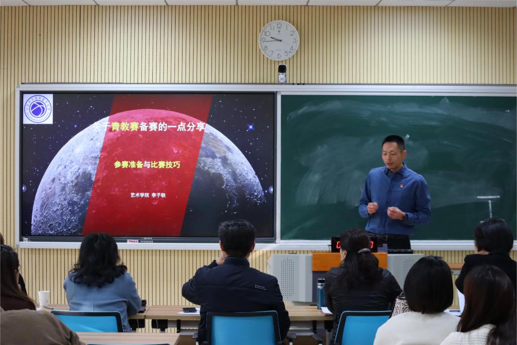 随后,第四届全省高校青年教师教学竞赛获奖者李子轶老师分享参赛经验。他主要从参赛准备和比赛技巧两点展开汇报,对课程教学理念、教学设计、比赛各个环节以及相应的注意事项等进行了详细解析,鼓励青年教师同仁们要树立信心,精雕细琢,反复修改,不断打磨以提升教学效果。