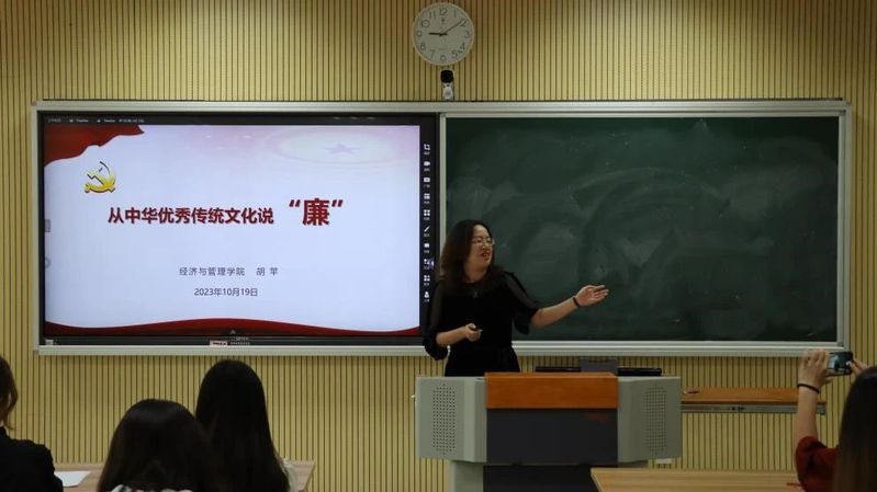 为深入学习习近平总书记对宣传思想文化工作重要指示精神,10月19日上午,经济与管理学院党委副书记胡苹受邀来私人影院 开展《从中华优秀传统文化说“廉”》主题讲座。