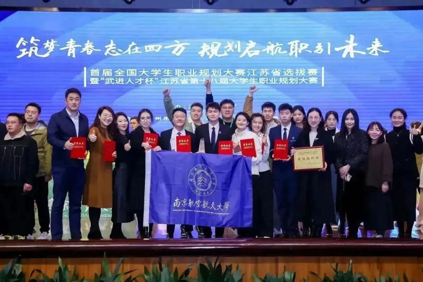 全国大学生职业规划大赛是由教育部举办,今年比赛作为首届全国比赛得到各省市高校的高度重视,比赛旨在进一步加强高校生涯教育和就业指导工作,增强大学生生涯规划意识,促进高校毕业生高质量充分就业。江苏省教育厅高度重视,精心筹备江苏省选拔赛,组织动员全省高校53万余选手报名参赛,共有1231名选手进入省级复赛,最终123选手晋级决赛。大赛分为高教组、职教组两个组别,成长和就业两个赛道,来自多个行业多个地区的评委参评。经过现场陈述、评委提问、天降offer等多个环节的激烈角逐,最终高教组产生10个金奖,20个银奖,30个铜奖。