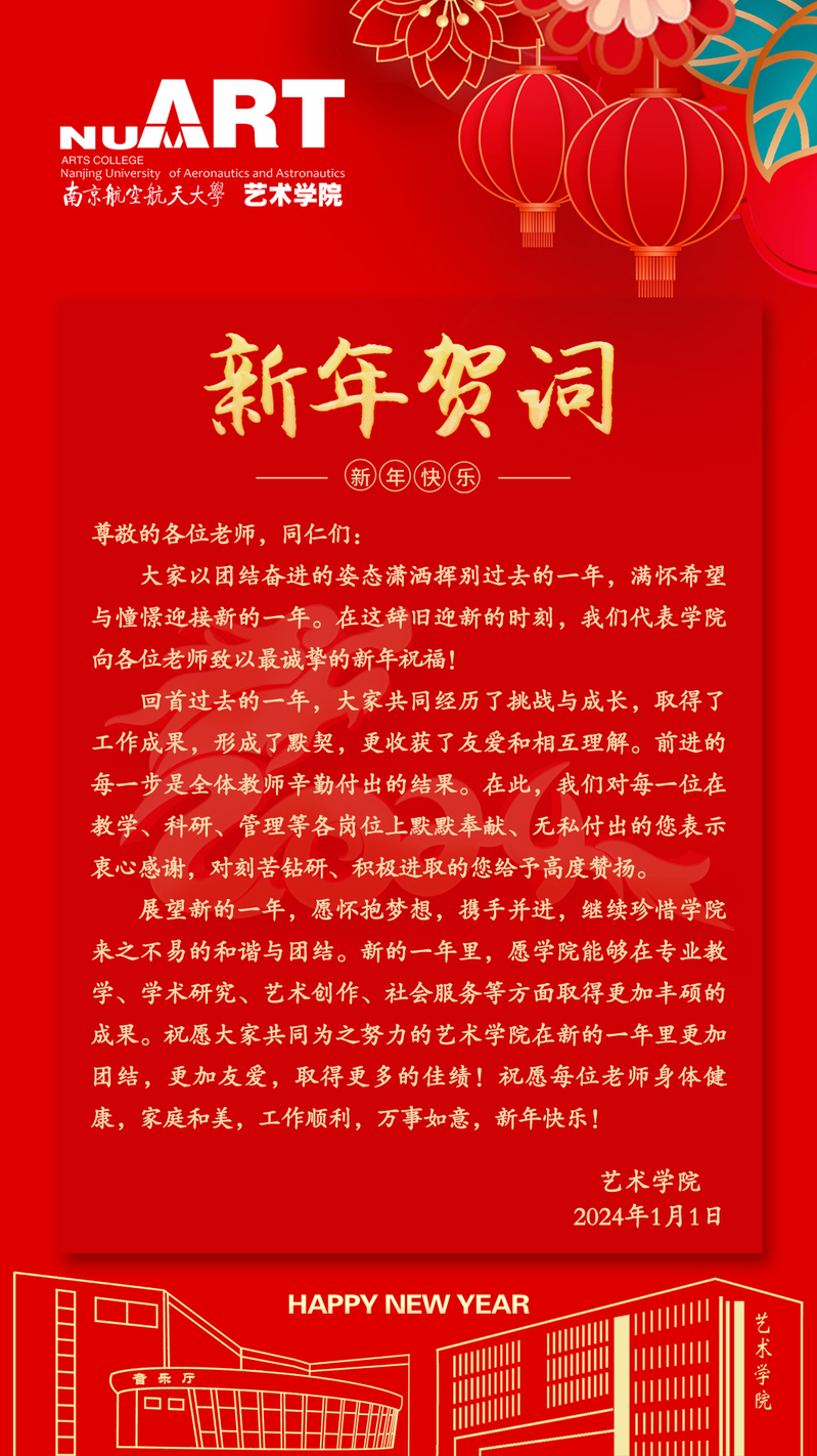 大家以团结奋进的姿态潇洒挥别过去的一年,满怀希望与憧憬迎接新的一年。在这辞旧迎新的时刻,我们代表学院向各位老师致以最诚挚的新年祝福!