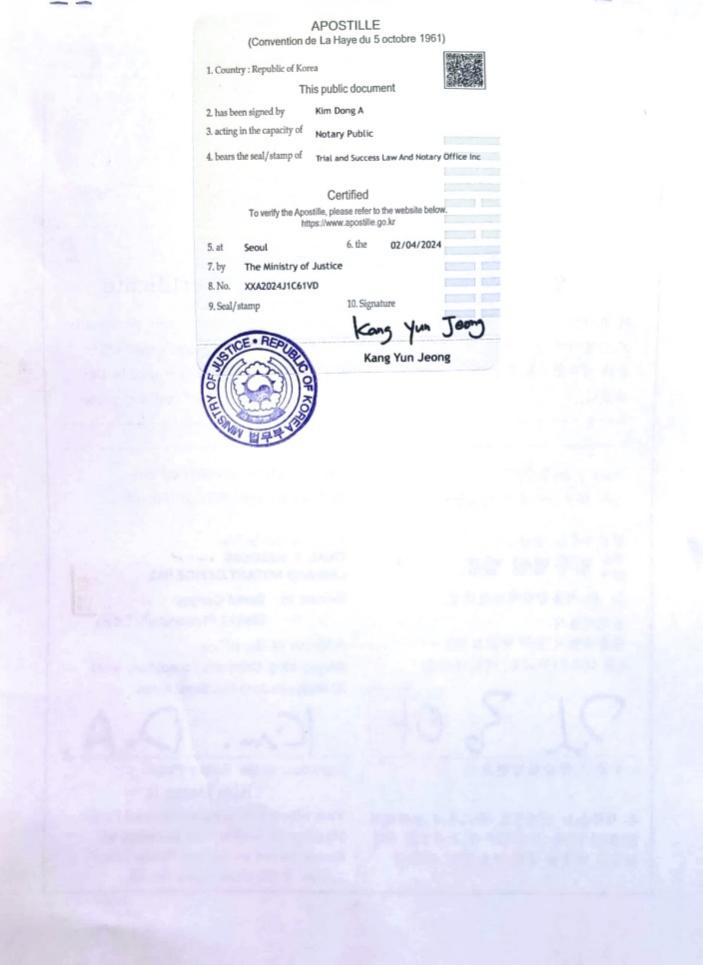 亚洲文化景观学会非盈利法人设立许可证附加证明书(Apostille)