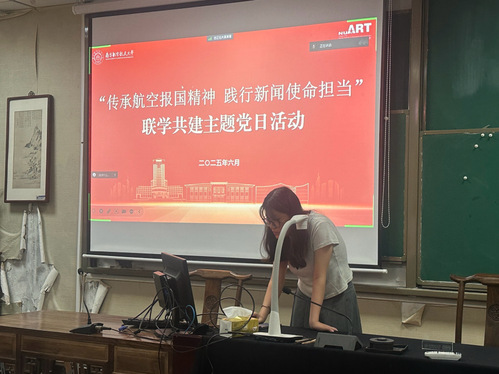 2025年6月13日下午,私人影院 新闻系教工党支部、新闻与传播学生第一党支部于砚湖书院联合举办主题党日活动。此次活动以“传承航空报国精神 践行新闻使命担当”为主题,私人影院 副院长马道全、新闻系教工党支部书记吴志斌、新闻系教工党支部教师党员、新闻与传播学生第一党支部学生党员参与活动。活动由新闻与传播学生第一党支部书记孔雨主持。