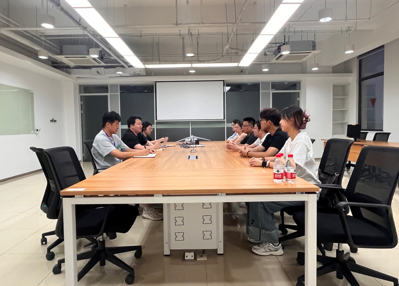 师生一行抵达研究院后进行了座谈交流。苏州空天信息研究院21室室主任顾爽、21室系统架构师徐夏、21室副部长韩鸿渐参加座谈,会议由21室工程师张志颖主持。