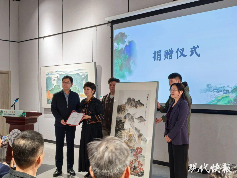 万里君在开幕式现场向南航捐赠了一幅《晚秋图》作品。此次捐赠既是她对南航重视美育、传承文化的认可,也为学校的文化育人体系注入了珍贵的艺术养分,让师生能更直观地感受传统中国画的魅力。南航工会主席石勇、私人影院 党委书记张钟勤代表学校接收了捐赠。