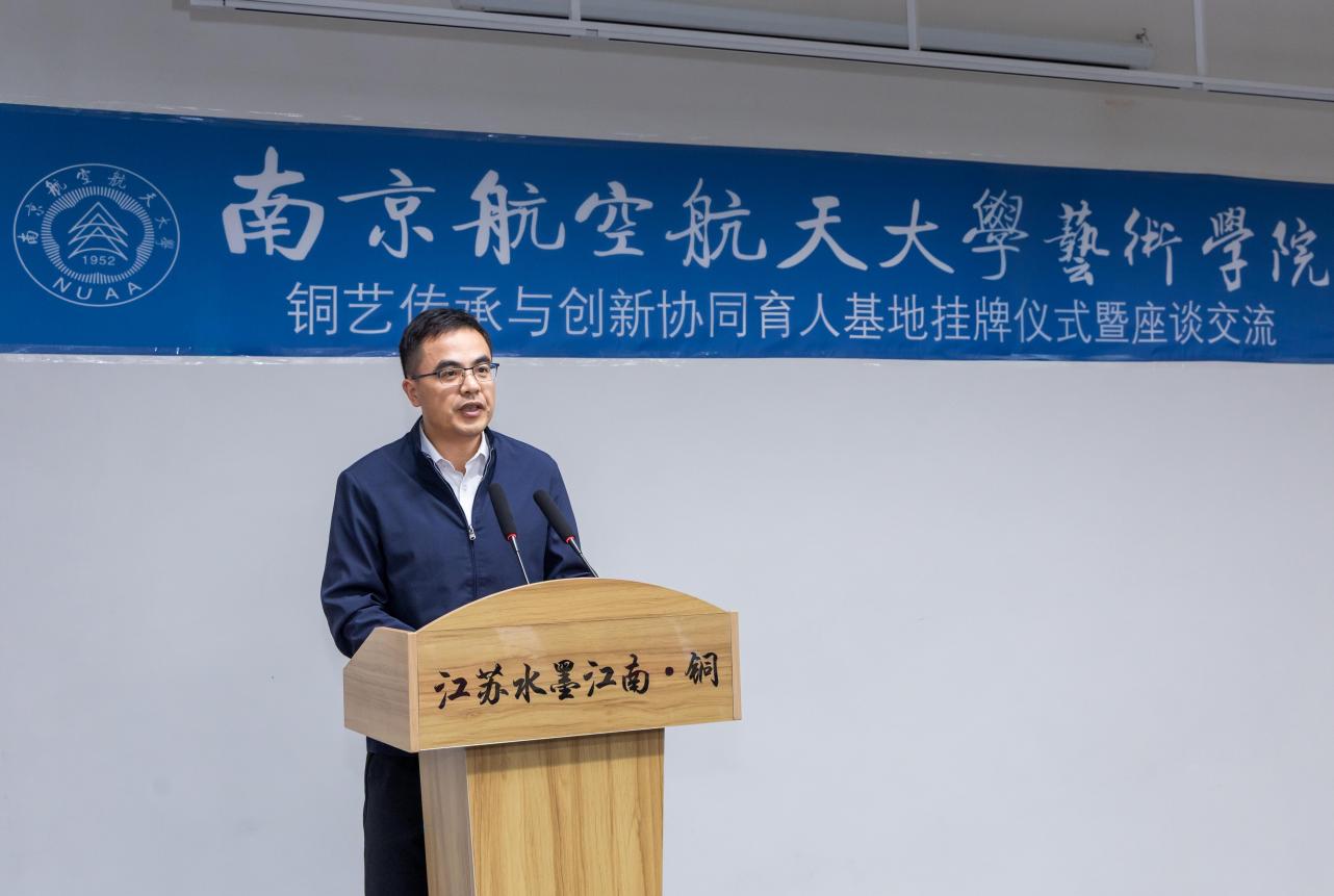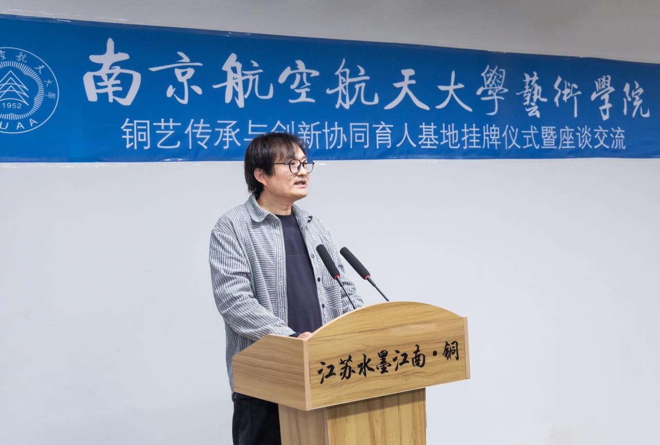 2025年10月30日下午,私人影院 与江苏水墨江南铜艺术馆在溧阳共同举行“铜艺传承与创新协同育人基地”挂牌仪式暨座谈交流会。溧阳市文联主席沈佳宾与古县街道党工委副书记、办事处主任管文彪、市民间文艺家协会、市美术家协会艺术家代表、江苏水墨江南园林景观工程有限公司董事长王光超、江苏水墨江南设计总监、常州大学硕士生导师朱惠娟、私人影院 领导班子参加会议。