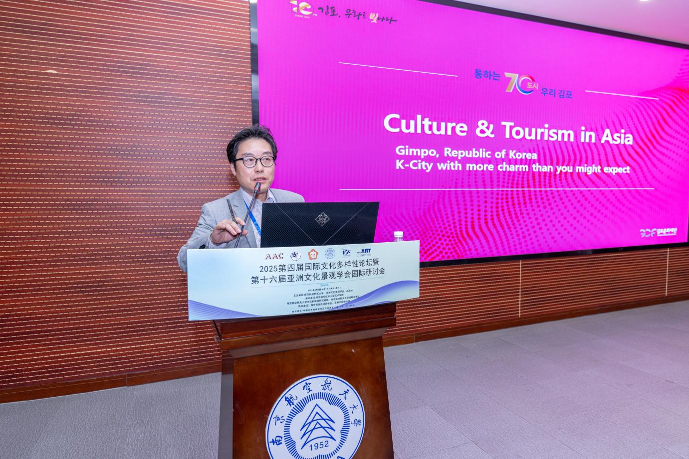 在上午的主旨演讲环节中,来自泰国清迈大学的副校长Rattasit Sukhahuta教授分享了数字技术在遗产修复中的应用,展示了现代科技在古代寺庙保护中的创新应用;印度尼西亚Tribhuwana Tunggadewi大学副校长Erwin Ismu Wisnubroto博士则介绍了印尼水稻文化景观与抗逆性研究;越南范朗大学建筑学院院长Đỗ Phú Hưng博士以生态规划中的多重景观展示了越南城乡一体化的最新实践。随后,来自韩国金浦文化基金会的总经理Lee Il Woo先生以“金浦,一座距离极近且充满魅力的韩国城市”为题,从城市品牌塑造的角度探讨了地方文化建设。