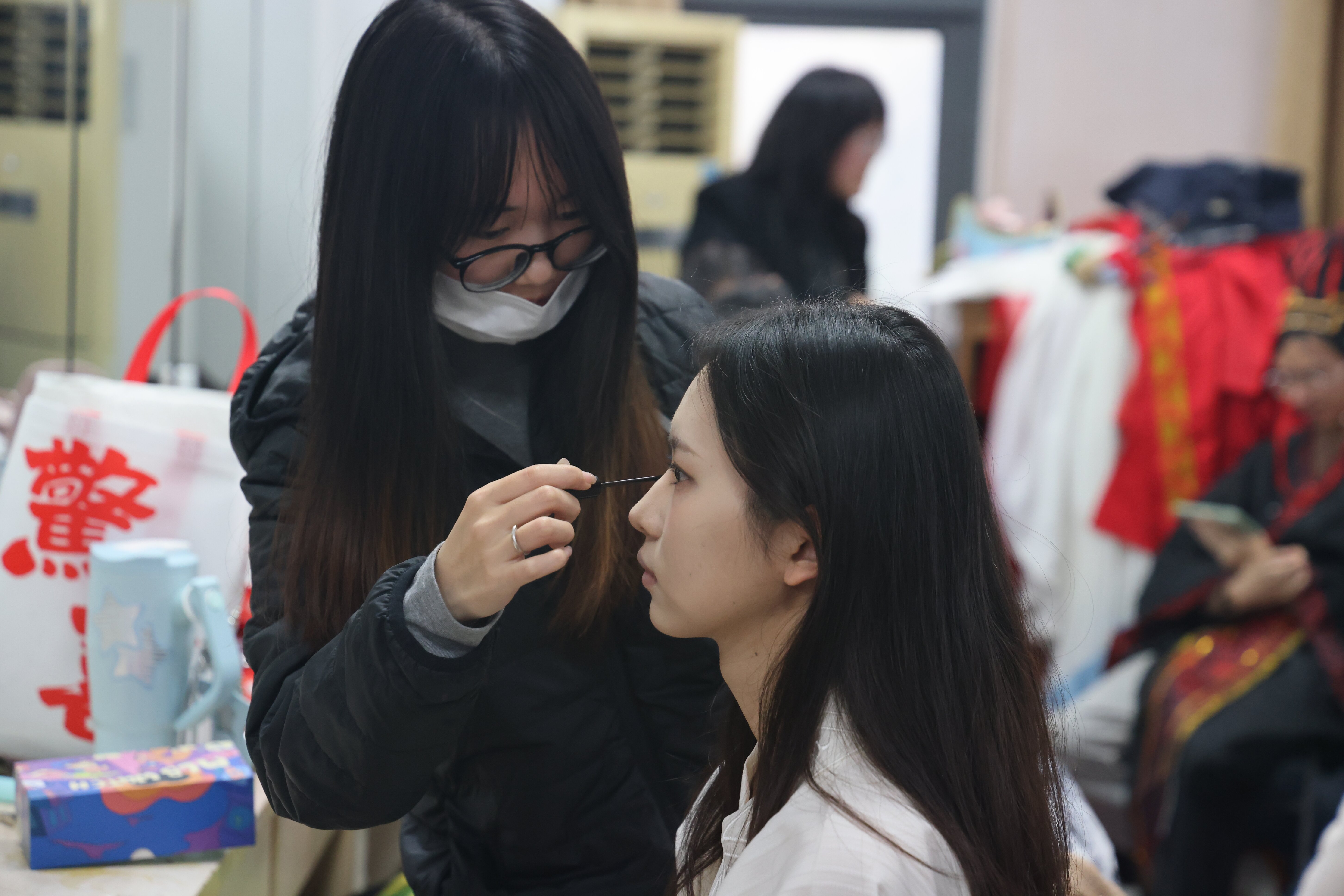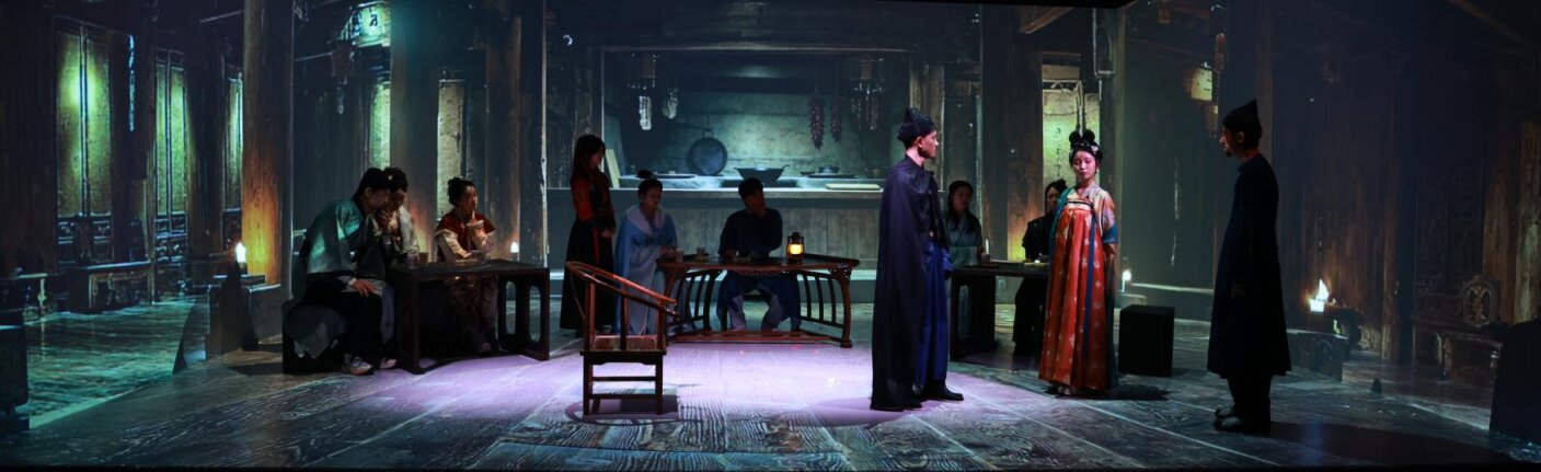 精彩的舞台效果离不开幕后的精心设计。自动化学院的王欣悦在参演《风雪摩家店》后深有体会:“这场沉浸式演出的温度,从不是某个人的高光,而是所有部门同频共振的结果。”从契合唐风的精细妆造,到精准烘托剧情氛围的灯光与沉浸式布景,美术系同学们的专业实践,为理工科演员们的真情演绎提供了坚实而绚丽的支撑,共同营造出引人入胜的戏剧时空。