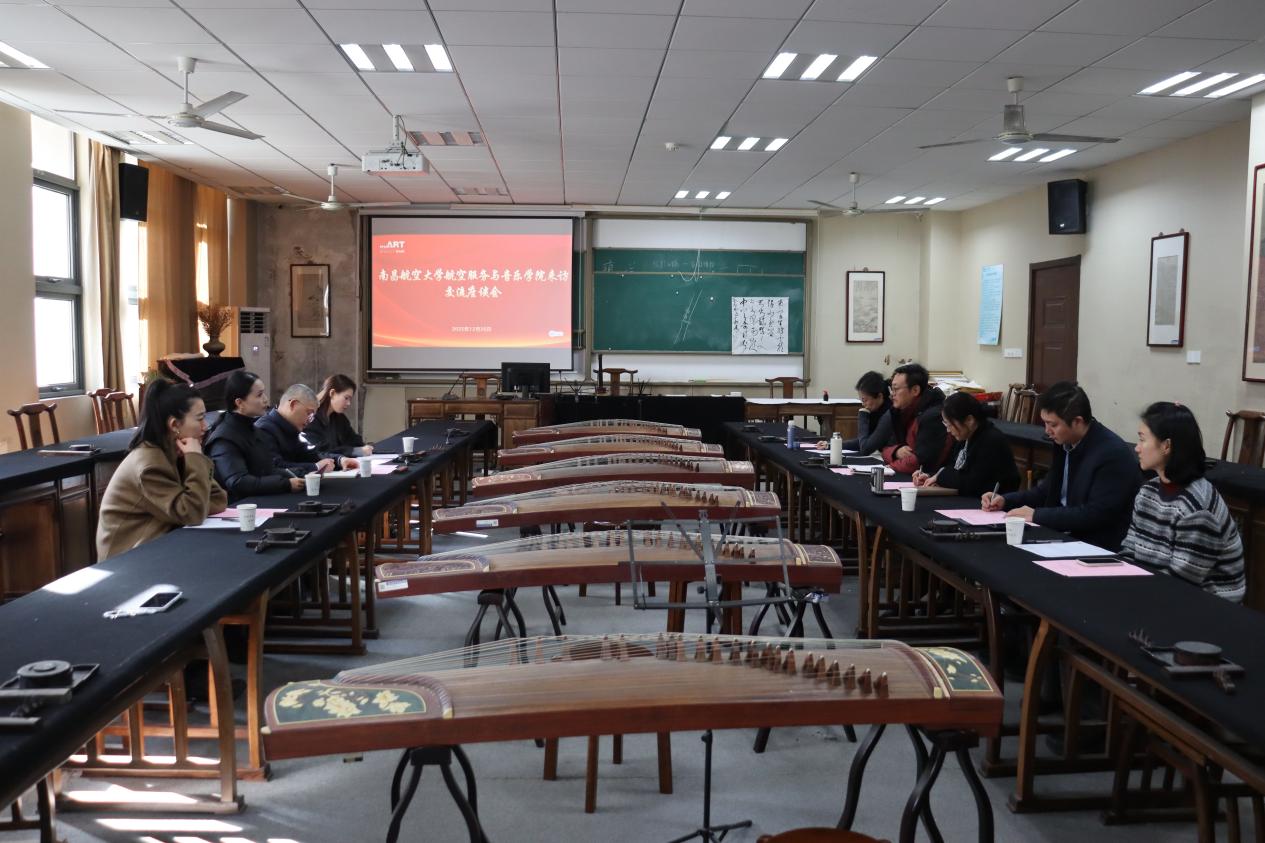 12月26日,南昌航空大学航空服务与音乐学院党委书记徐武俊一行来院调研,重点围绕党建品牌建设、学科专业建设、“艺工融合”发展等工作开展交流研讨。私人影院 党委书记张钟勤、院长板俊荣、音乐系教师代表黄晴葵、李念霖出席座谈会。会议由板俊荣主持。