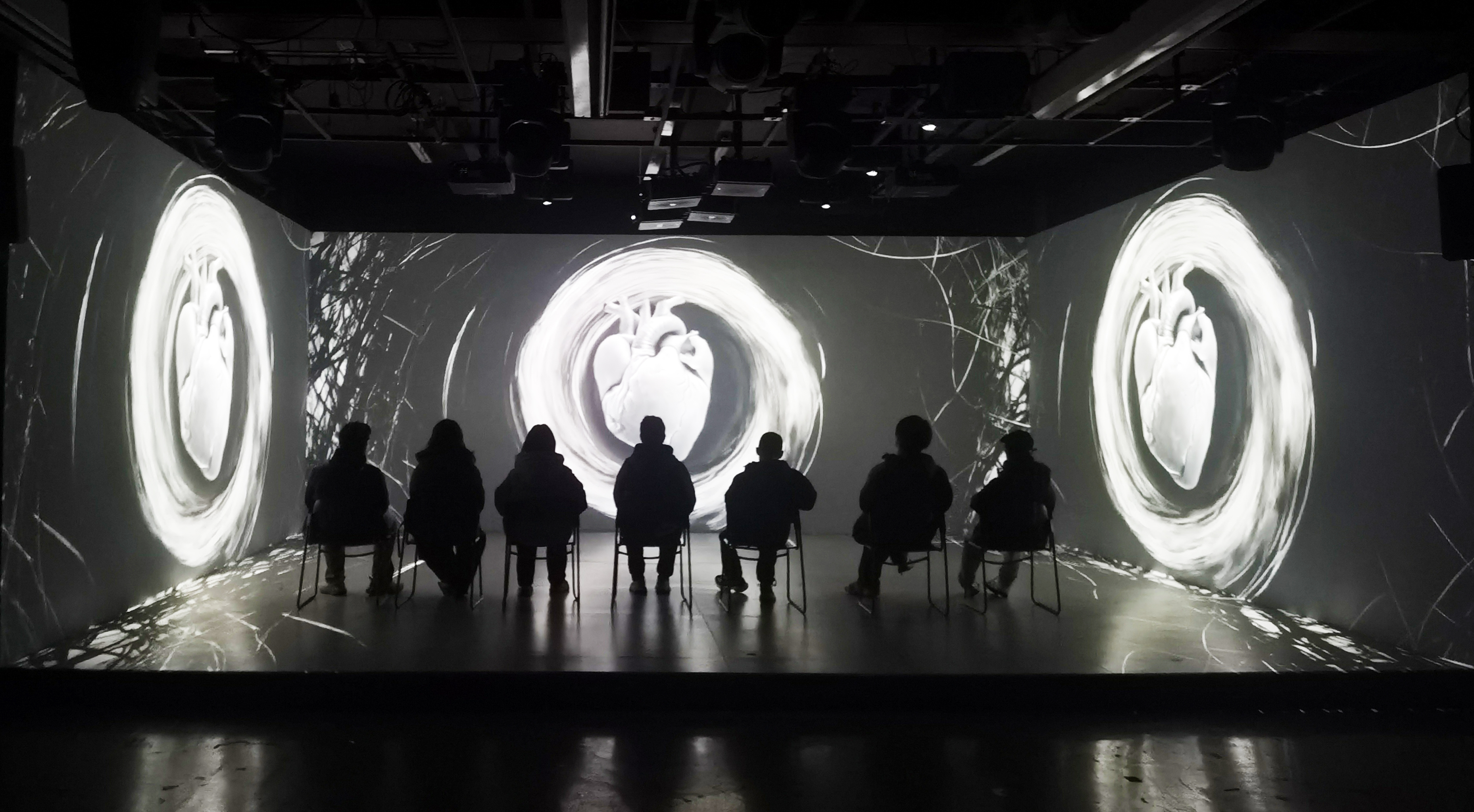 实践环节以“多维度感官协同”为核心,创新区教师团队搭建了多个主题沉浸式光影环境,涵盖视觉仿真、声音疗愈与作品解析等模块。在专业指导下,学生们通过亲身体验“感官协同唤醒”与“情绪深度共鸣”的完整流程,实现了从理论认知到实践感知的深度学习转化,这一过程强化了学生的工程应用能力与艺术表达能力。